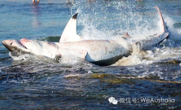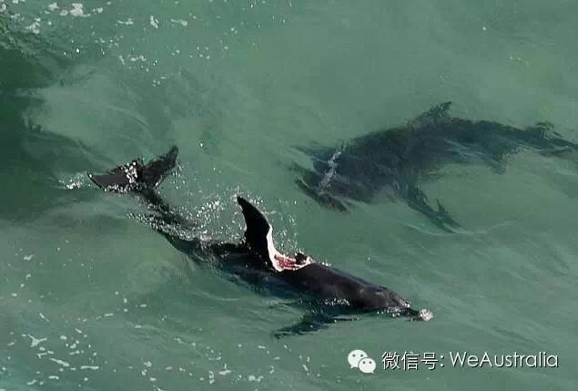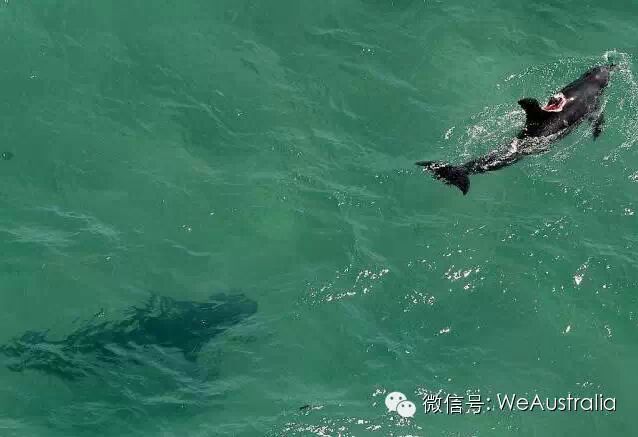 那次,一只3.5米长的巨大鲨鱼在悉尼临城Newcastle一处离岸50米的海域尾随一头海豚,然后对其大开杀戒!