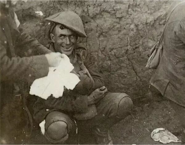 1916年第一次世界大战期间,法国战场战壕中罹患弹震症(Shell Shock)的士兵。弹震症,是现在通称“创伤后压力症候群”的一种较早的说法,主要是指经历战争的士兵,有的会出现失眠、易怒、过度警觉、惊吓、精神崩溃等症状。
