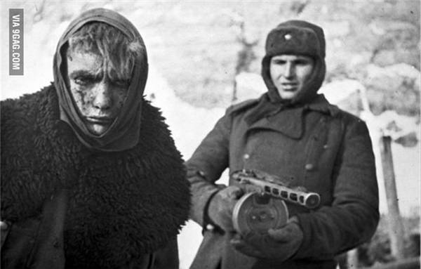 1943年,第二次世界大战,斯大林格勒战役中的德国战败,当时苏联红军士兵正俘虏德国战俘当街游行。斯大林格勒战役是二战苏德战争的转折点,也是近代史上最血腥的一战,德国与苏联双方死伤约710000人,包括参战人数,皆超过其他战役。德国冒险挺进苏联,拉长战线,却因无法速战速决,导致军备燃料及医疗用品逐渐短缺,再加上德国士兵无法适应苏联寒冷的气候,大量因冻伤、营养不良和疾病死亡。