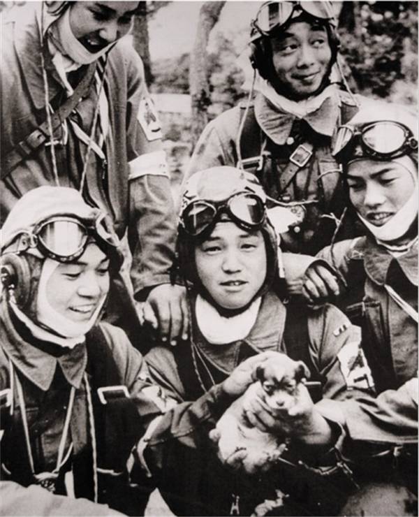 17岁的神风特攻队第72振武队下士荒木幸雄(Yukio Araki)抱着一只小狗和四个年纪相当的同伴合影。这张照片由朝日新闻记者拍摄,两日后(1945年5月27日)他们赴冲绳执行任务,以自杀式攻击美军舰艇。这张照片揭开神风特攻队队员不为人知的一面,打破人们一位对他们的既定印象。
