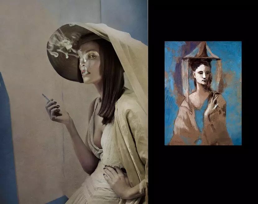要重现十八世纪的名画风格例如「重现经典名画风格的摄影作品」,勉强都可以说「其实唔难」,因为那些绘画本身就是以写实为基础,构图、透视、光线、色彩运用等等相比之下至少理论上与摄影很相近,但如果是另一大画家毕卡索(Pablo Ruiz Picasso)呢?一谈到他,大家脑里可能就想起那些错位了的眼睛、鼻子和古怪强烈的色彩,然而,西班牙摄影师 Eugenio Recuenco正是以此为题材!