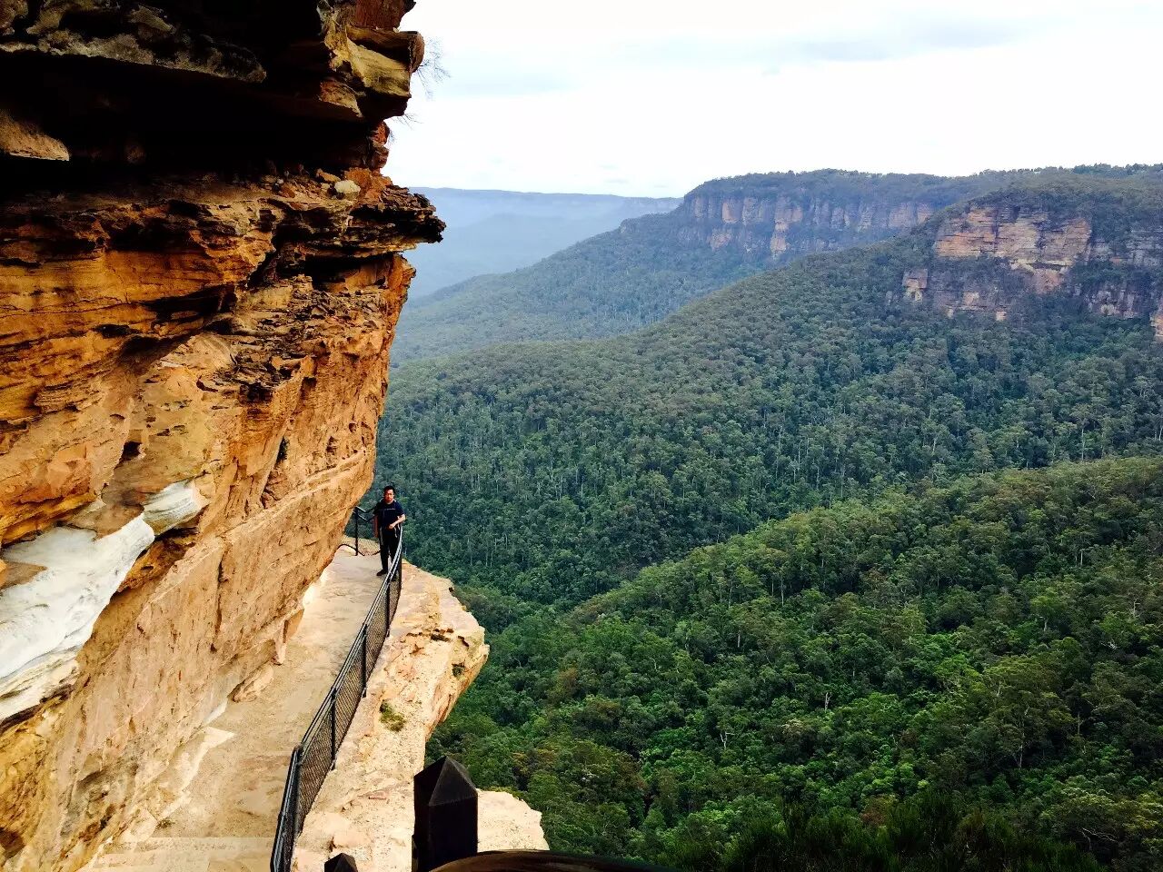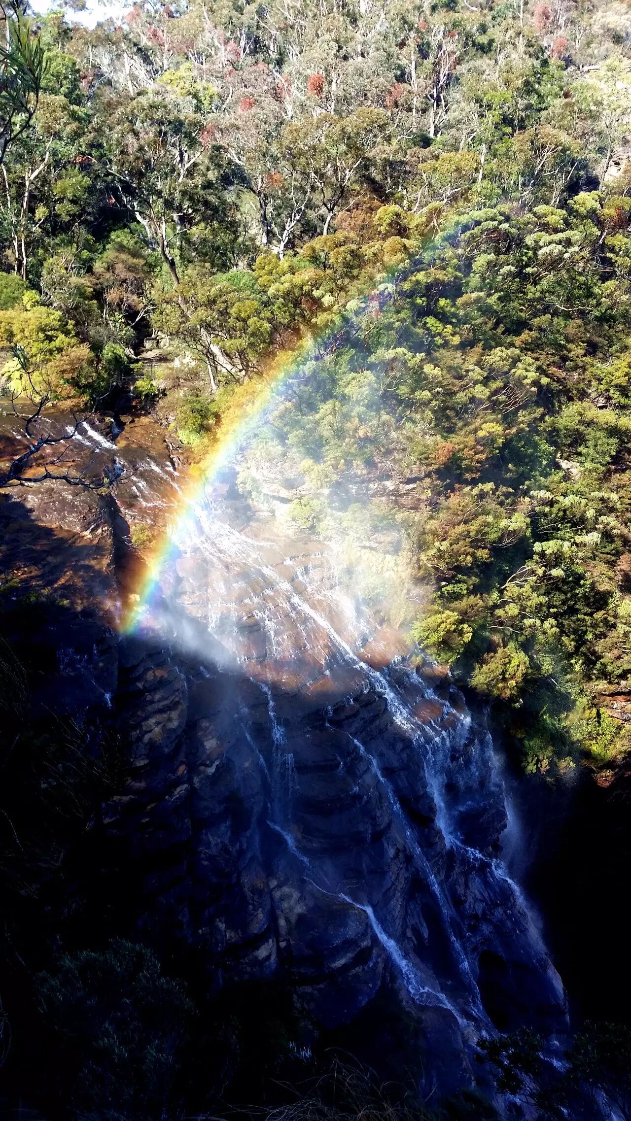 从半山腰的另一个视角,整个Wentworth Falls一览无余,包括Upper Wentworth Falls和Lower Wentworth Falls。National Pass Loop不经过Lower Wentworth Falls,但是半山腰整体景色要好于山谷林间。这一次走的Wentworth Pass 能欣赏到Lower Wentworth Falls。