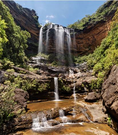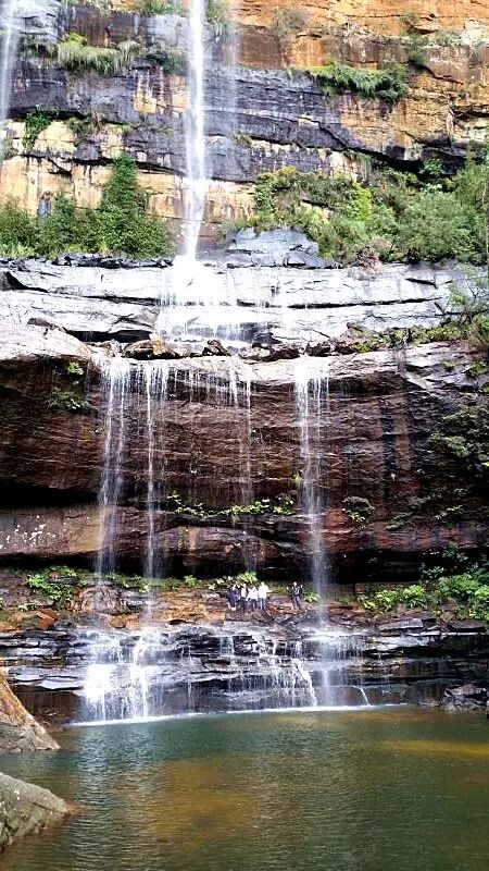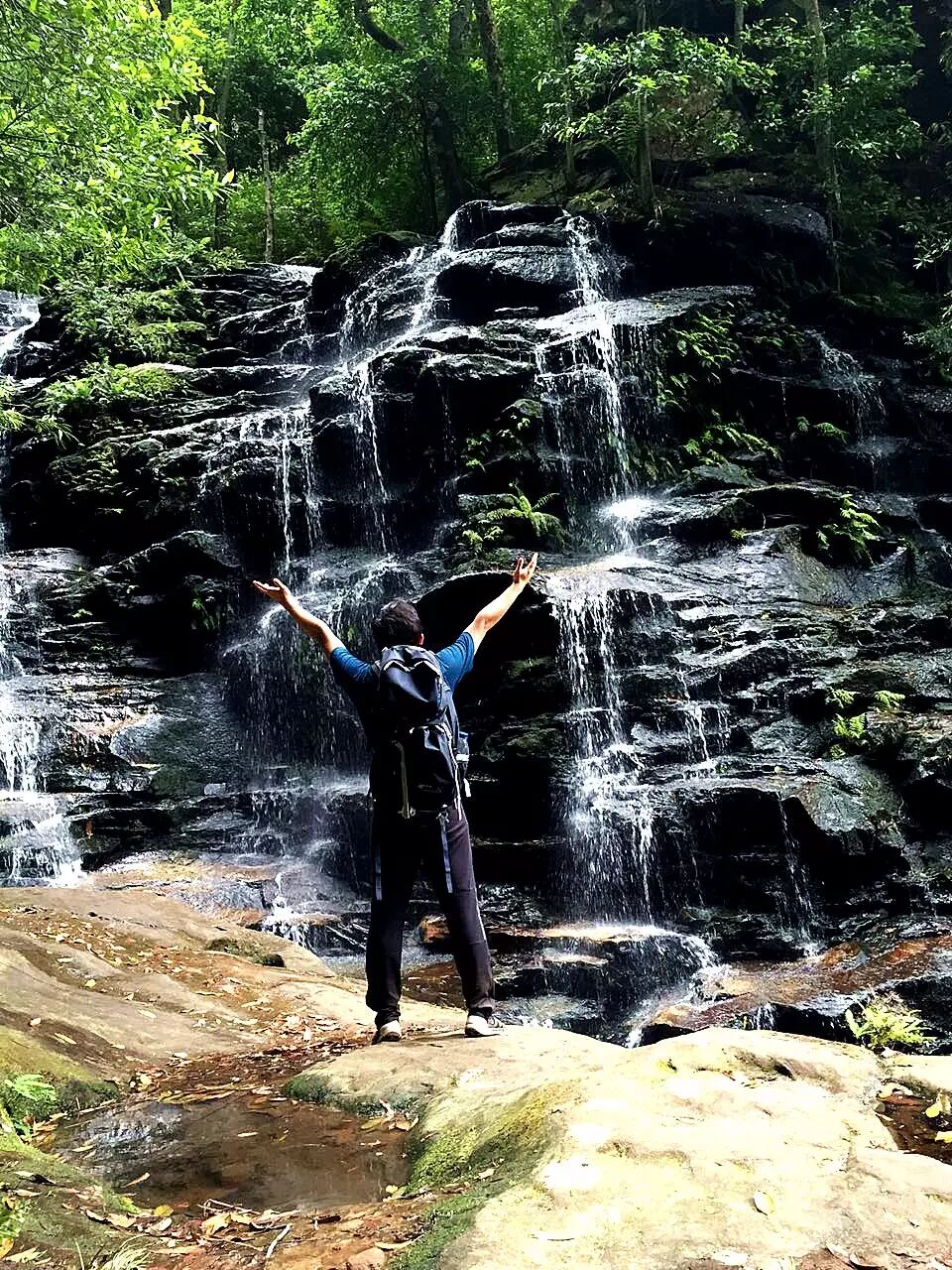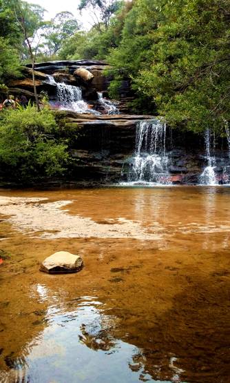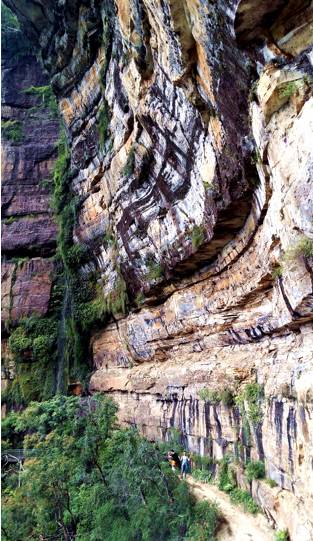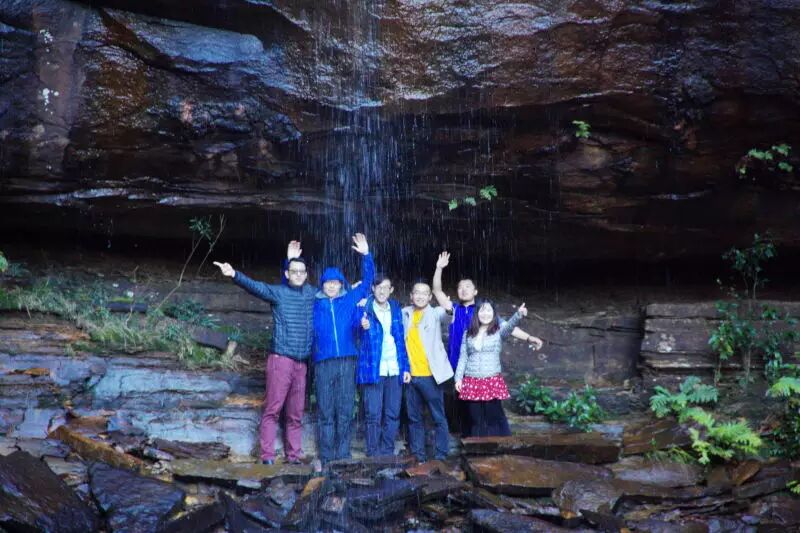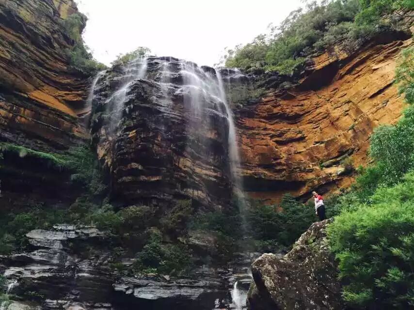 路的尽头便通往一片水潭,而此处就是LowerWentworth Falls。大自然的调色盘在这里打翻,泼墨也是如此不均。此时,一行小伙伴体力好的可以跟着我到瀑布后边去感受一下“水帘洞”的魅力,不愿去的朋友可在此处吃自己带来的午餐。这也是大家的午餐点,边吃着午餐,边聆听着回荡在幽谷中的潺潺水声。