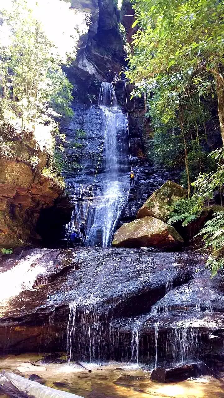 过了层层阶梯,30米落差的Empress Falls呈现在眼前,这里是驴友瀑降最热门的地点之一,每一次来都会看到很多户外队员在这里玩瀑降。