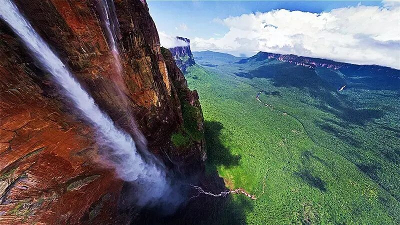 ☛ 你们知道吗?安赫尔瀑布是世界上落差最大的瀑布哦~丘伦河水从平顶高原奥扬特普伊山(Auyan-tepui)的陡壁直泻而下,几乎未触及陡崖,落差达979.6米,大约是尼亚加拉瀑布高度的18倍!就算是看到图片,你们也会跟小怪一样,忍不住“哇”一下吧~