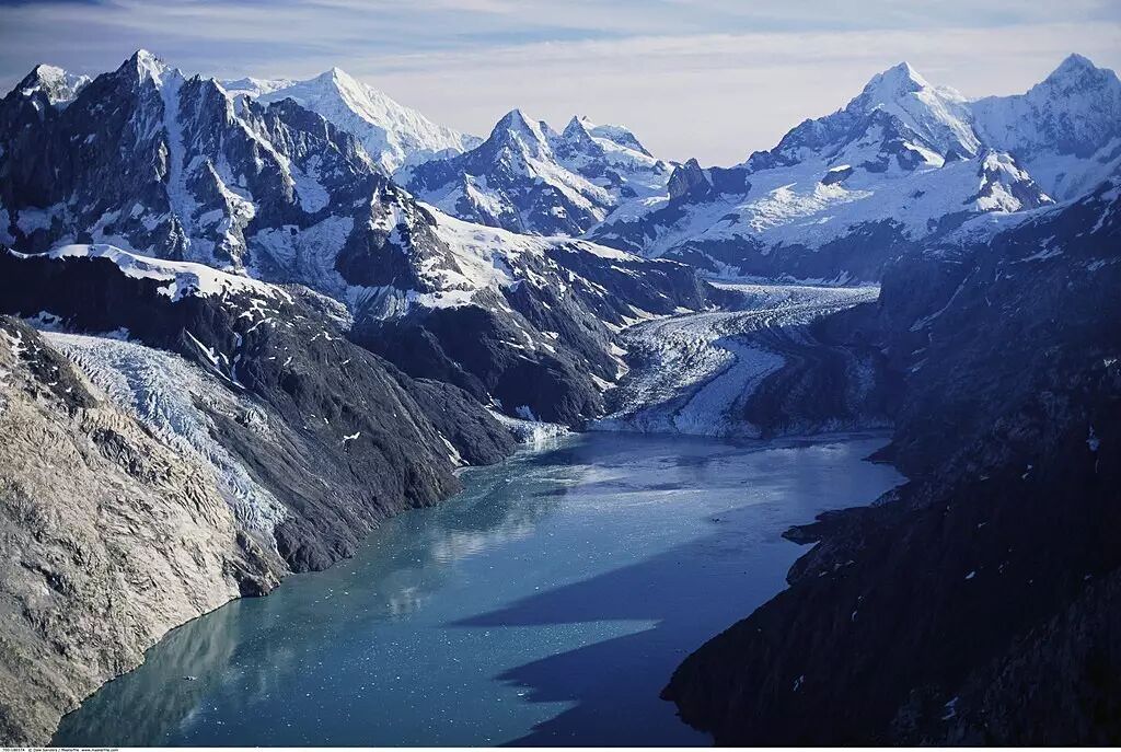 ☛ 阿拉斯加州(Alaska)位于北美大陆西北端,东与加拿大接壤,拥有全美20座最高山脉中的17座,世界上大多数活动冰川在阿州境内。