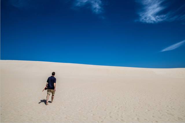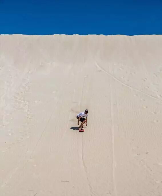 在南澳大利亚的袋鼠岛(Kangaroo Island)上有一块神奇的白色沙漠,距离大海数英里,周围生长着灌木植物,景色迷人,仅仅是在沙漠上散步就已非常享受,而如果你喜欢刺激,还能参与沙丘之上的滑沙运动,坐上滑沙板,从高高的沙丘上快速滑下,享受速度带来的激情。
