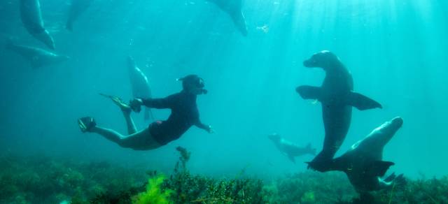 在艾尔半岛,穿戴好潜水装备,可以下水和海狮、海豚以及金枪鱼一起畅游,和海豚、海狮亲密接触,探寻海洋精灵的秘密。