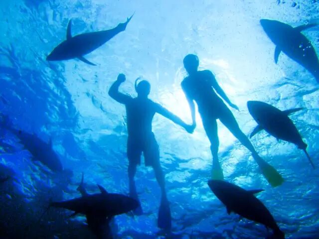 跟随专业的旅行公司体验“与大白鲨共潜”,穿戴好专业设备之后待在专业的防鲨笼或者是防鲨玻璃船内随着教练一起下潜至一定深度,你可以看到好几只大白鲨时不时地近距离游过。它们会试图张大嘴靠近你,胆子大的你可以拿起手中的相机拍下这“惊险刺激”的一幕。