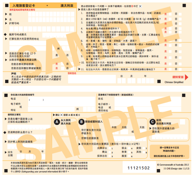 当飞机还没落地时,每一位即将入境的乘客都会收到一份由空乘人员提供的需要旅客入境卡(Incoming Passenger Card)一张。一般来说,中国航空公司的飞机上都会提供中文版,不过也有特殊情况,建议各位把中英版本的都看看,以不变应万变。